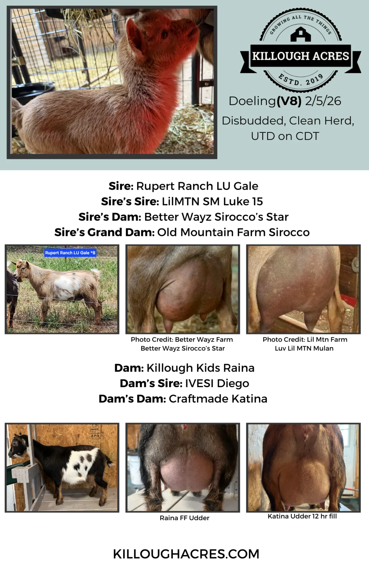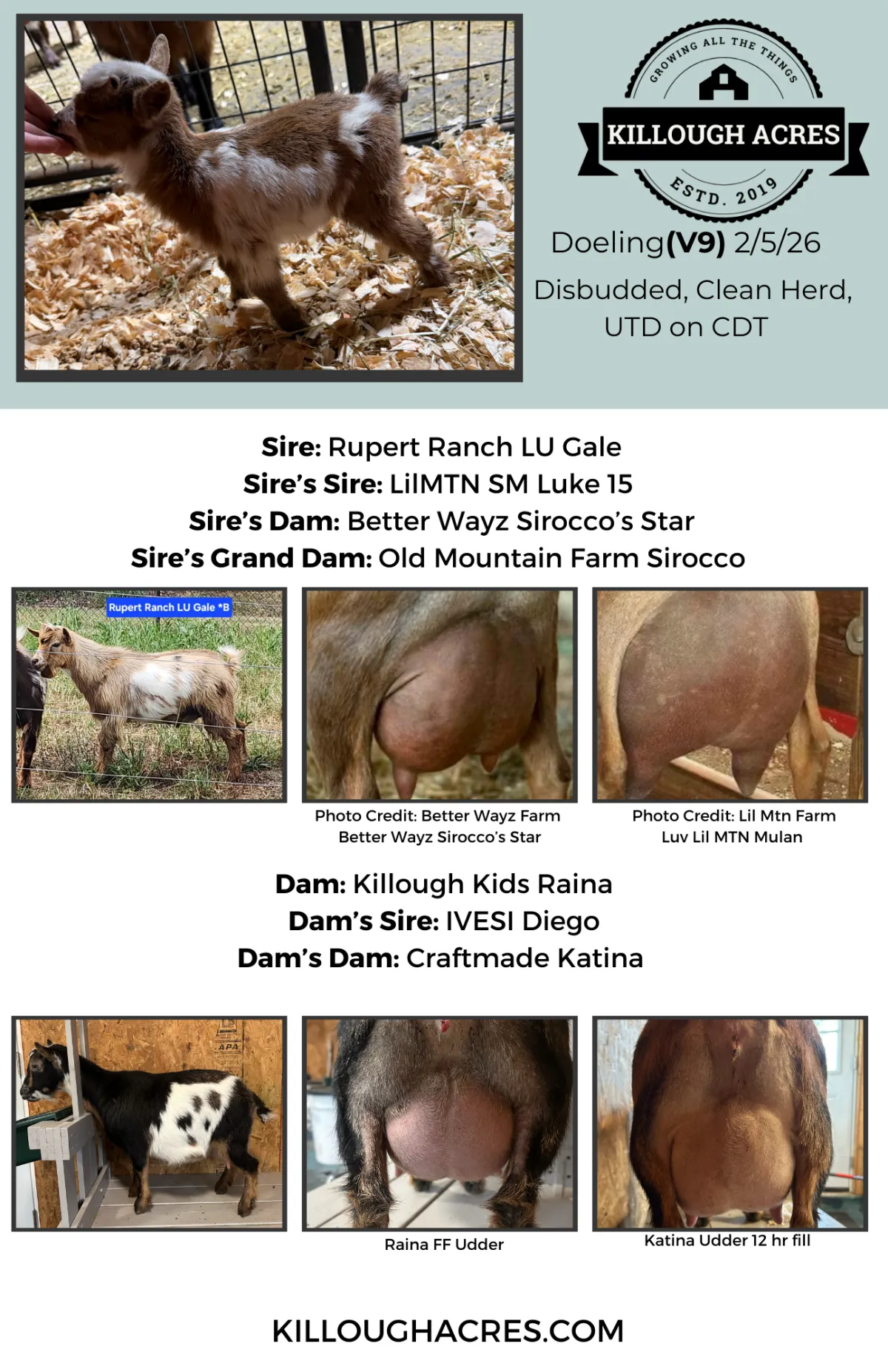 Killough Acres guarantees our goats are healthy at time of sale, and BUYER has the option to review the condition and health of the animal, including any veterinary examinations, at BUYER’s expense.